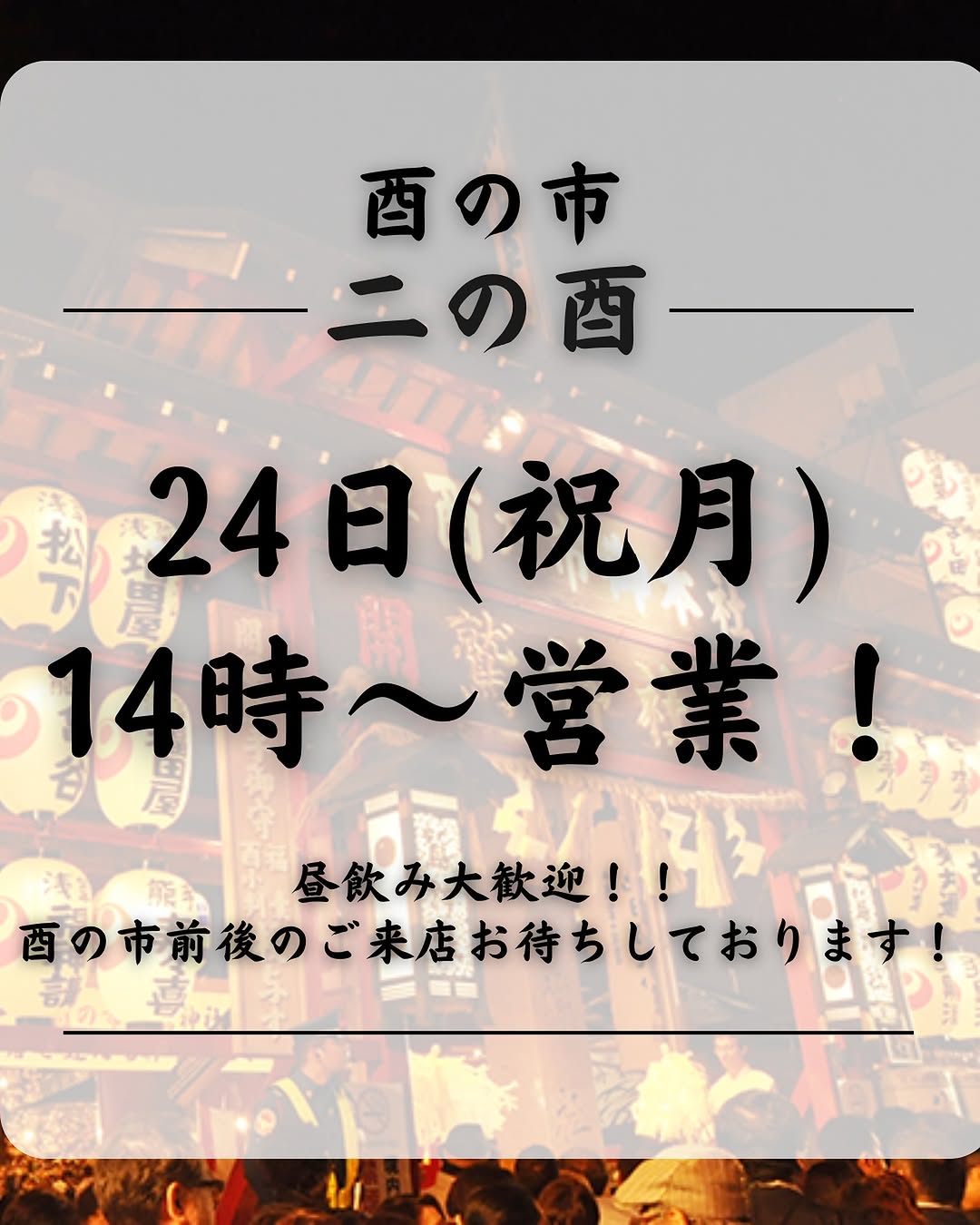 酉の市前後の✨昼飲み✨大歓迎です🍺🍶