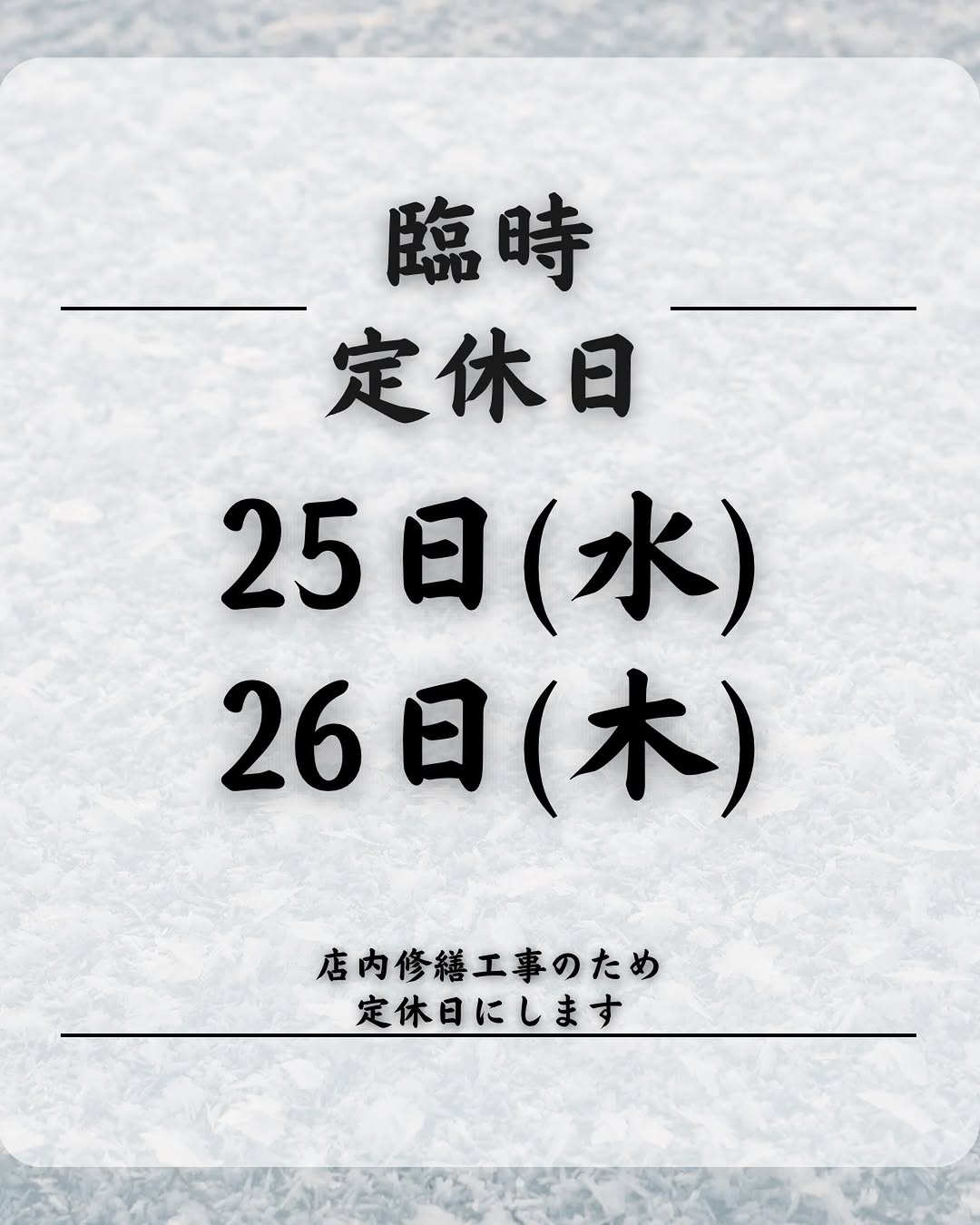 今月の臨時定休日🙇♂️ 25日(水)、26日(木) 店内修 […]