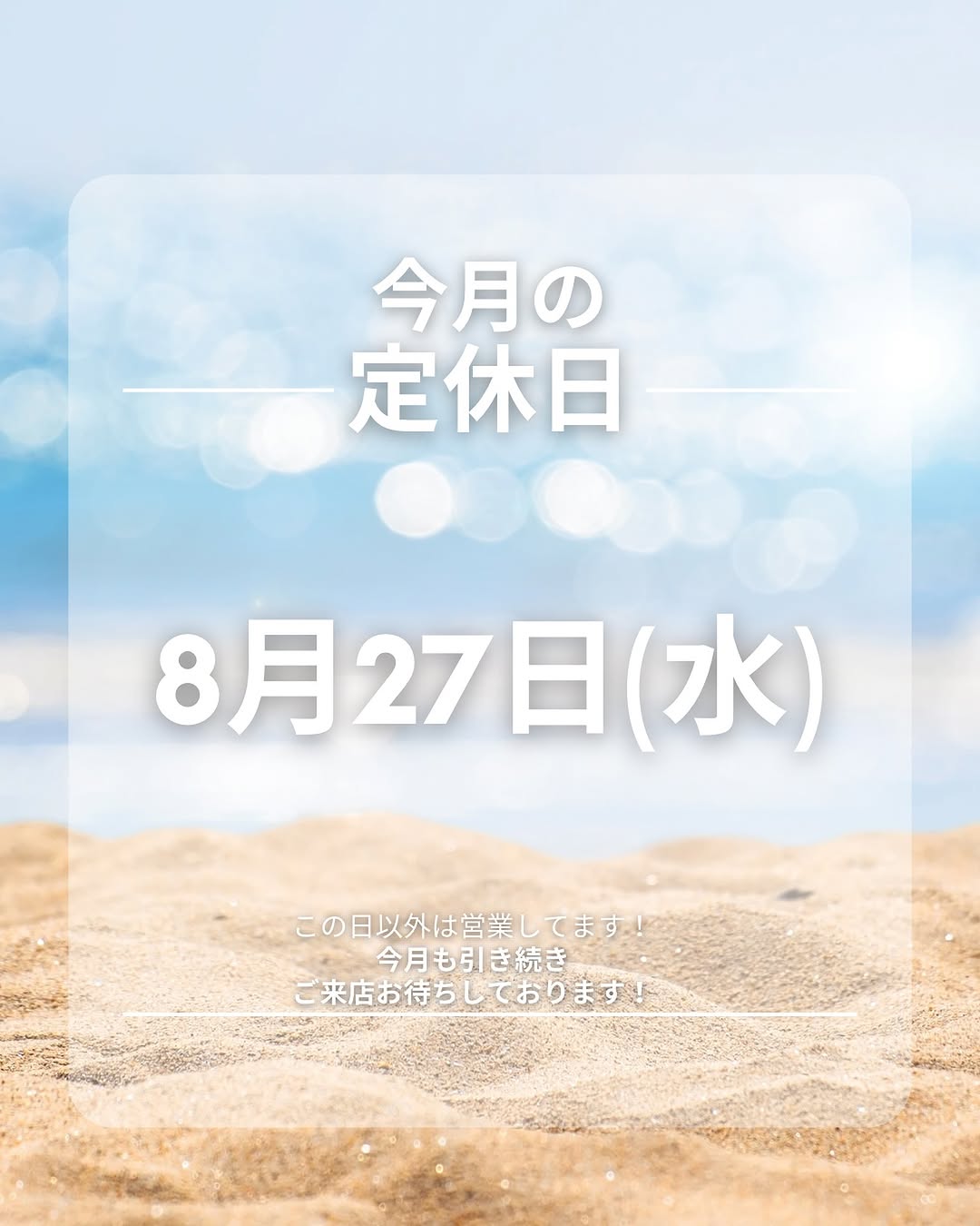 8月27日(水)がお休みとなります‼️