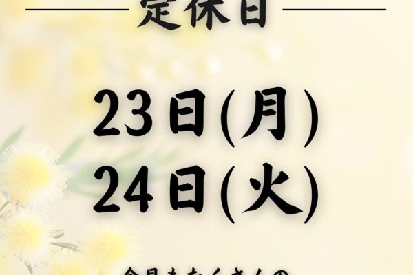 2026.3.2 【お知らせ📢】 其の① 3月の定休日 23日(月)、24日( […] 【お知らせ📢】 其の① 3月の定休日 23日(月)、24日(火)です‼️ 其の② 2月末でランチ営業が終了となりました。 3月より夜のみの営業に戻ります。 ランチ営業もたくさんのご来店をいただき あり…